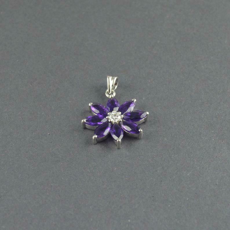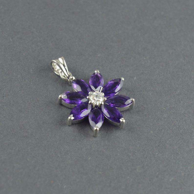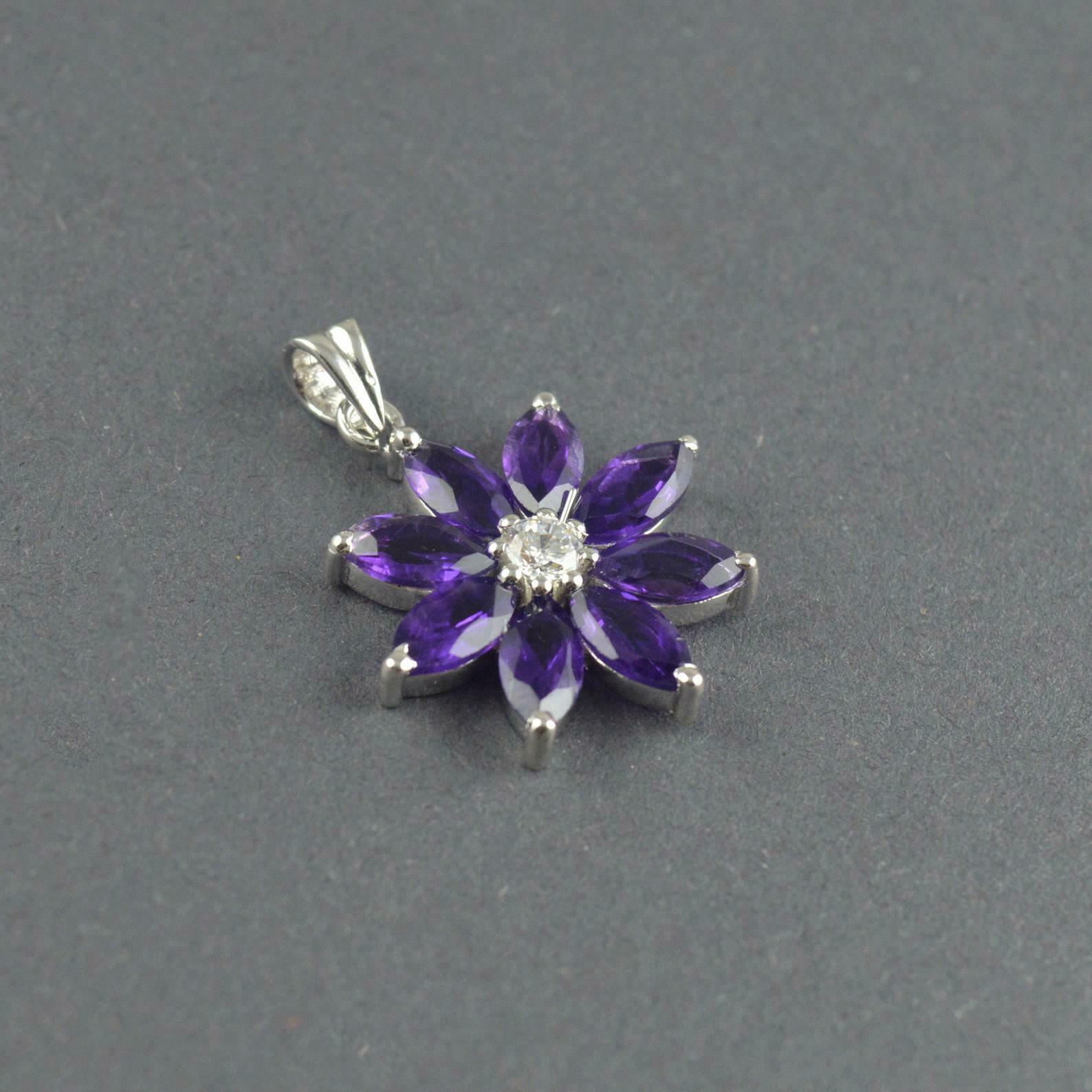2.2ct Purple Amethyst Pendant Marquise Cut Floral 14k White Gold Finish NO CHAIN