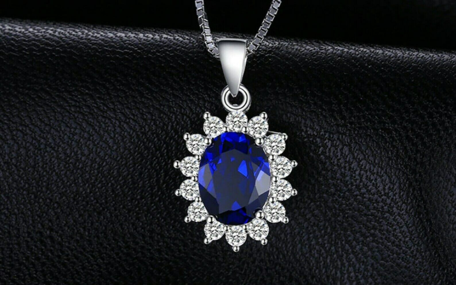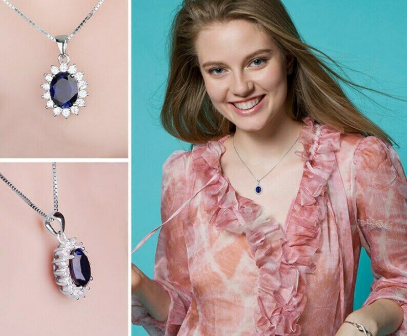 2.3ct Blue Sapphire Pendant Oval Cut Diamond Floral 14k White Gold Over NO CHAIN
