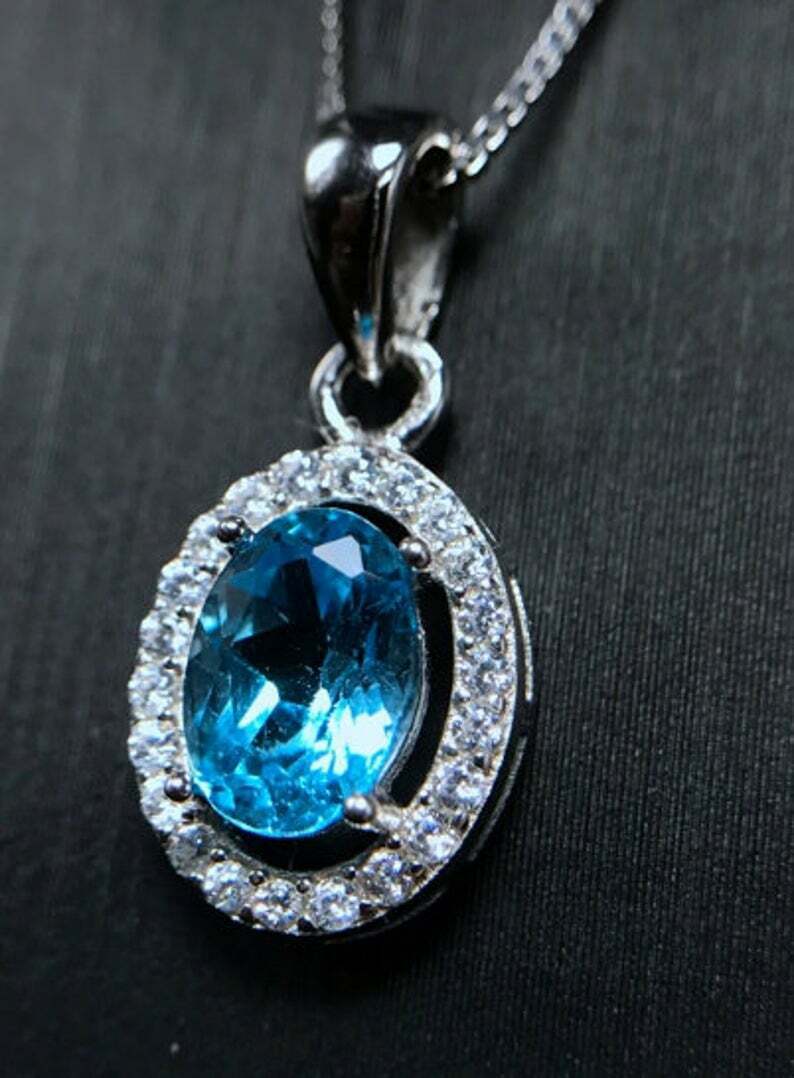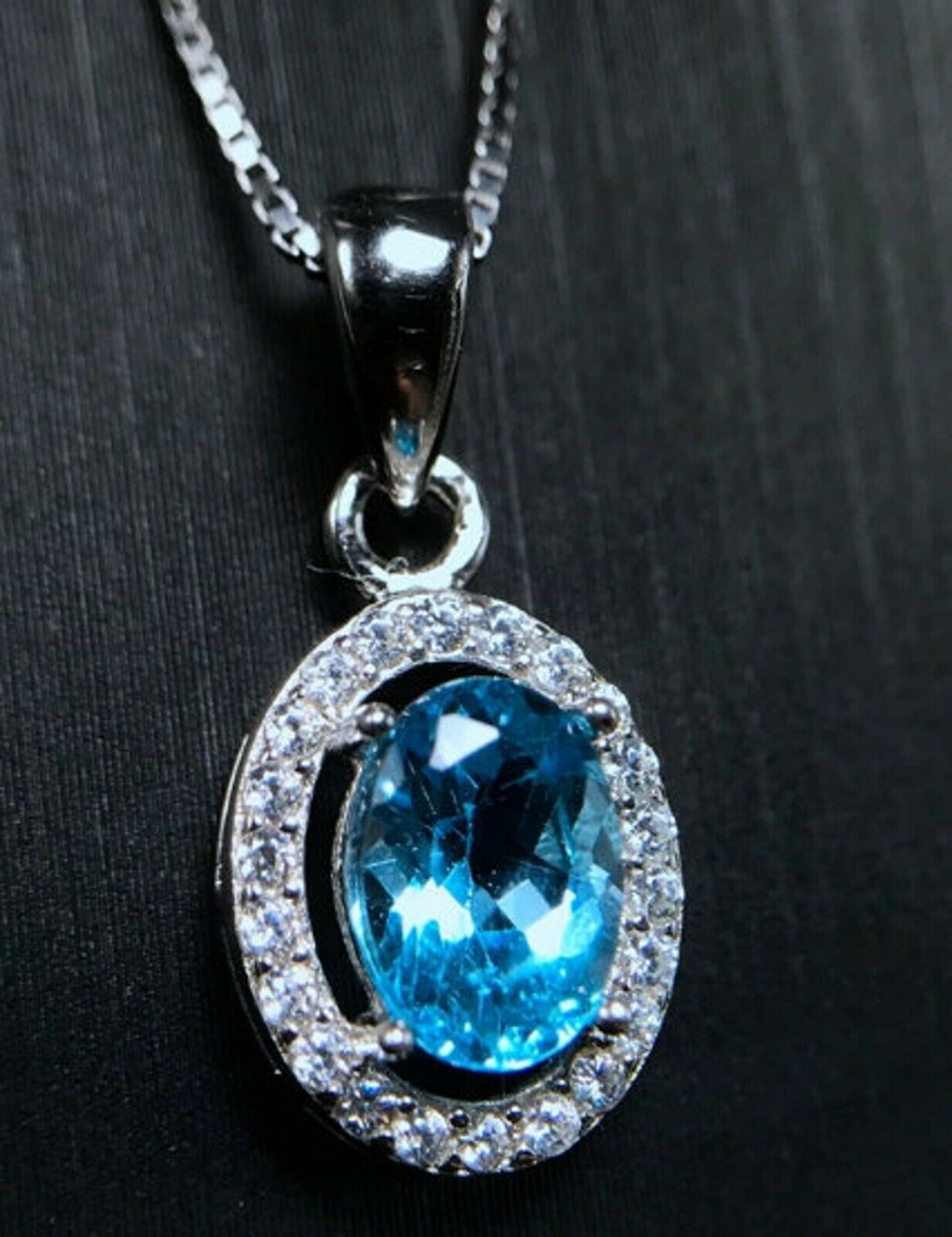 2.3ct Blue Topaz Pendant Oval Cut Diamond Halo 14k White Gold Finish NO CHAIN