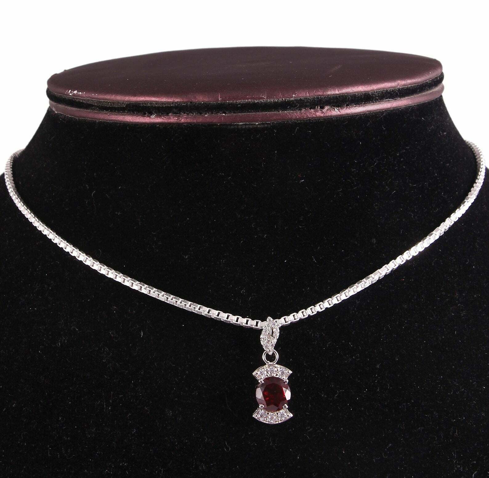 2.3ct Red Garnet Pendant Oval Cut Stylish 14k White Gold Finish NO CHAIN
