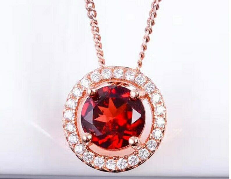 2.3ct Round Cut Red Garnet Halo Solitaire Pendant with Chain 14k RoseGold Finish
