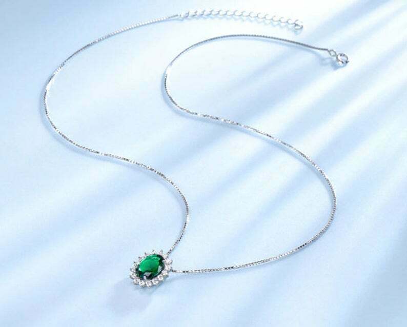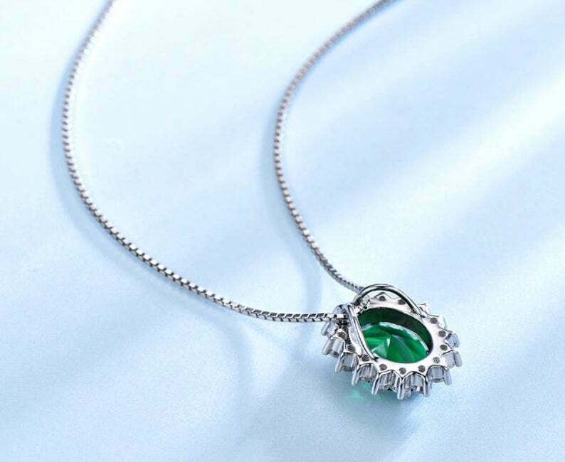 2.4ct Emerald Pendant Oval Cut Diamond Floral Halo 14k WhiteGold Finish NO CHAIN