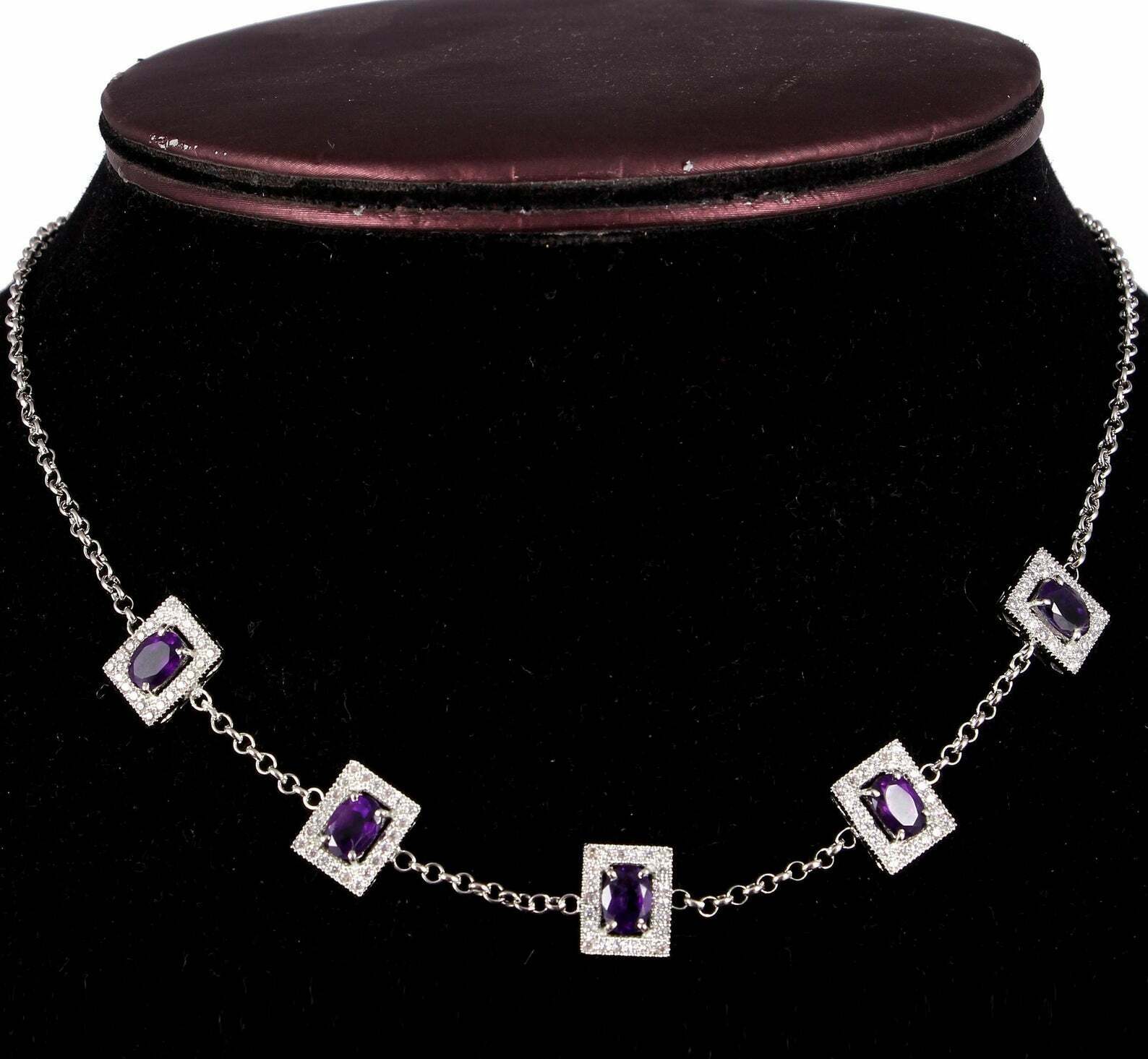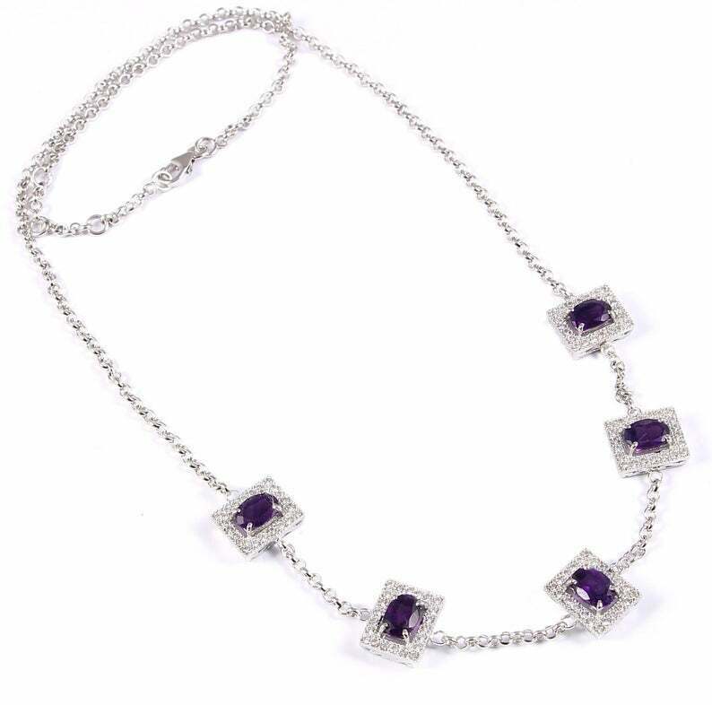 2.4ct Purple Amethyst Pendant Chain Oval Cut Partywear 14k White Gold Finish