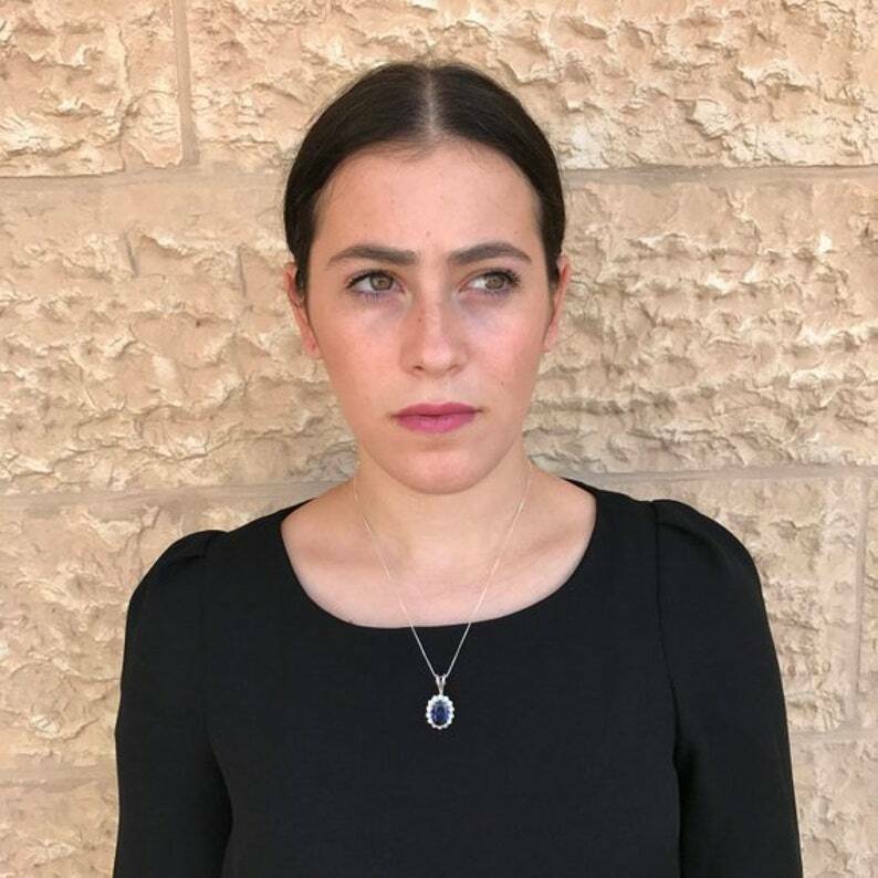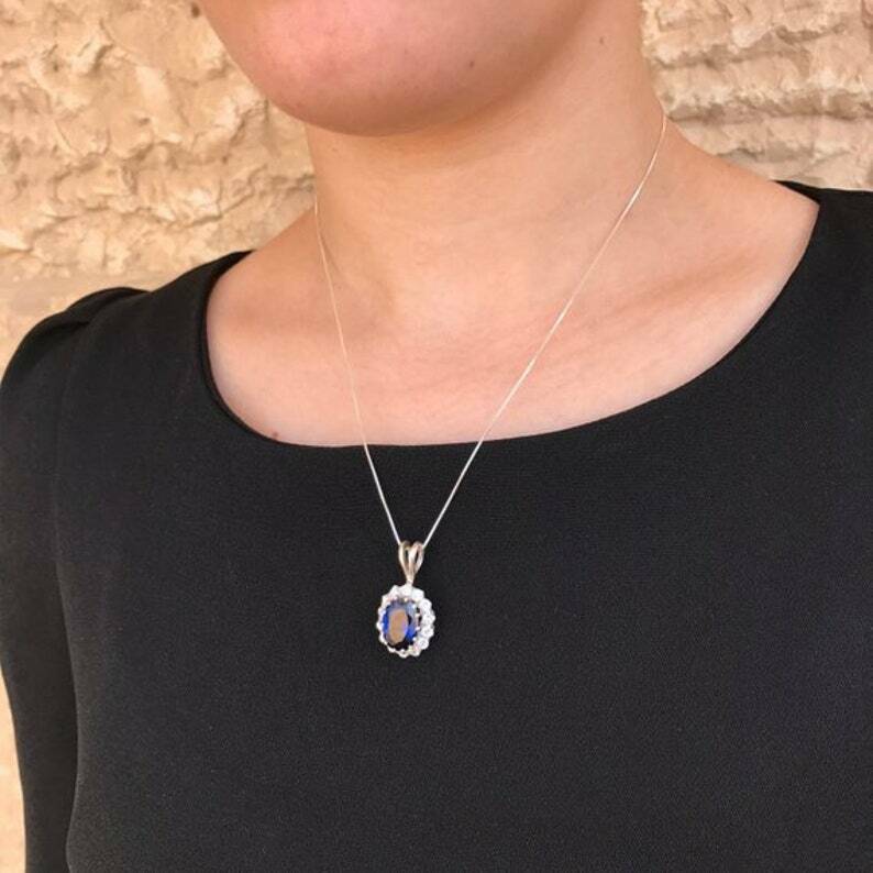 2.5ct Blue Sapphire Pendant Oval Cut Halo Cluster 14k White Gold Finish NO CHAIN