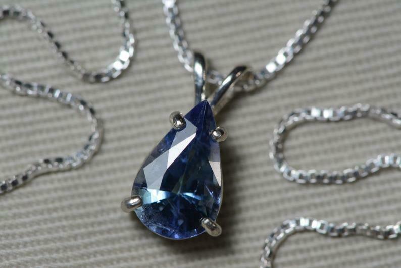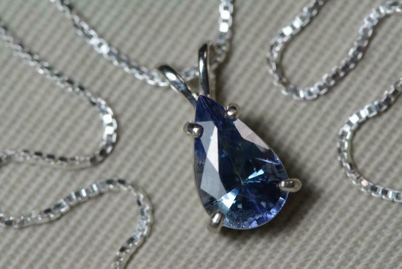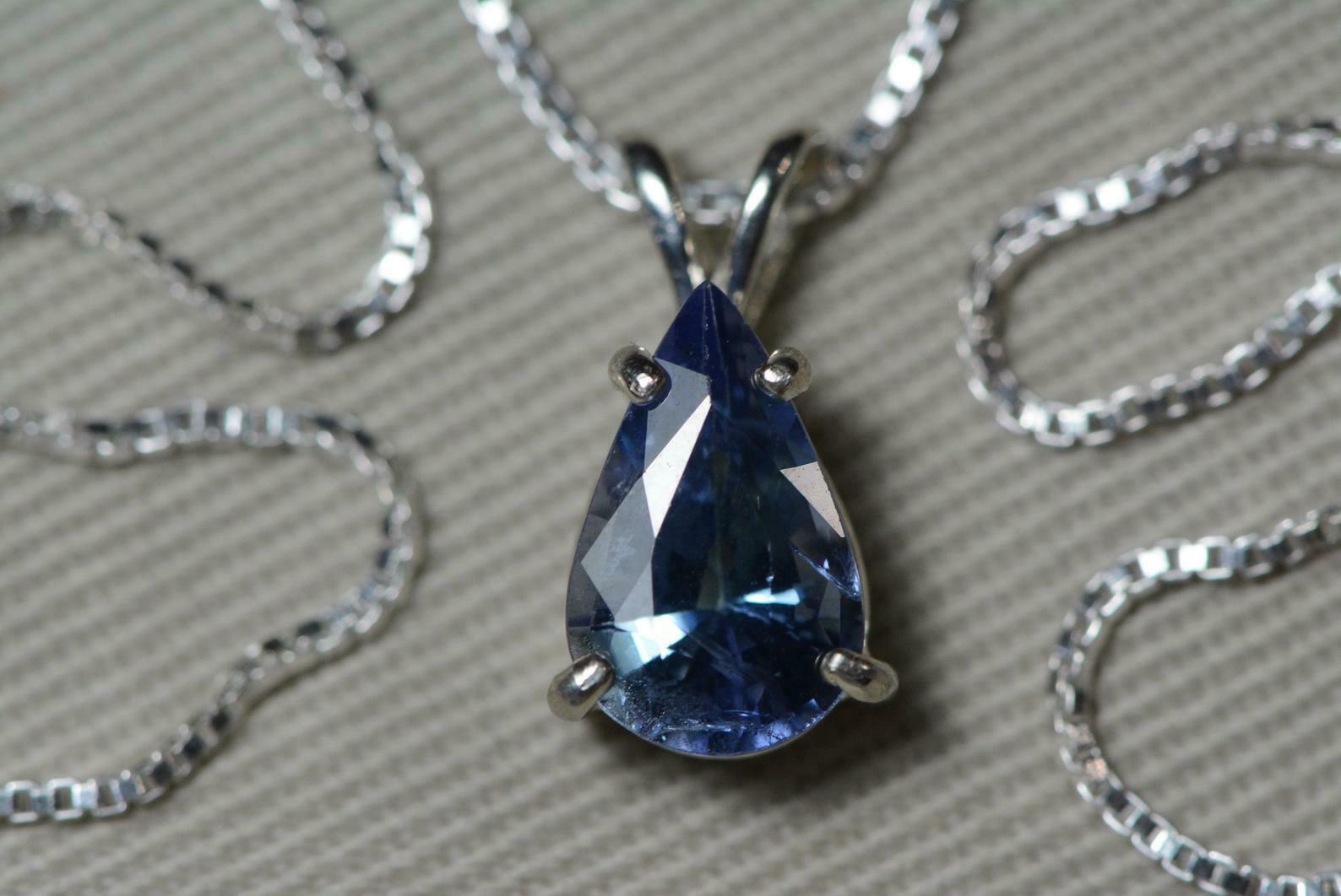2.5ct Blue Sapphire Pendant Pear Cut Solitaire 14k White Gold Finish NO CHAIN
