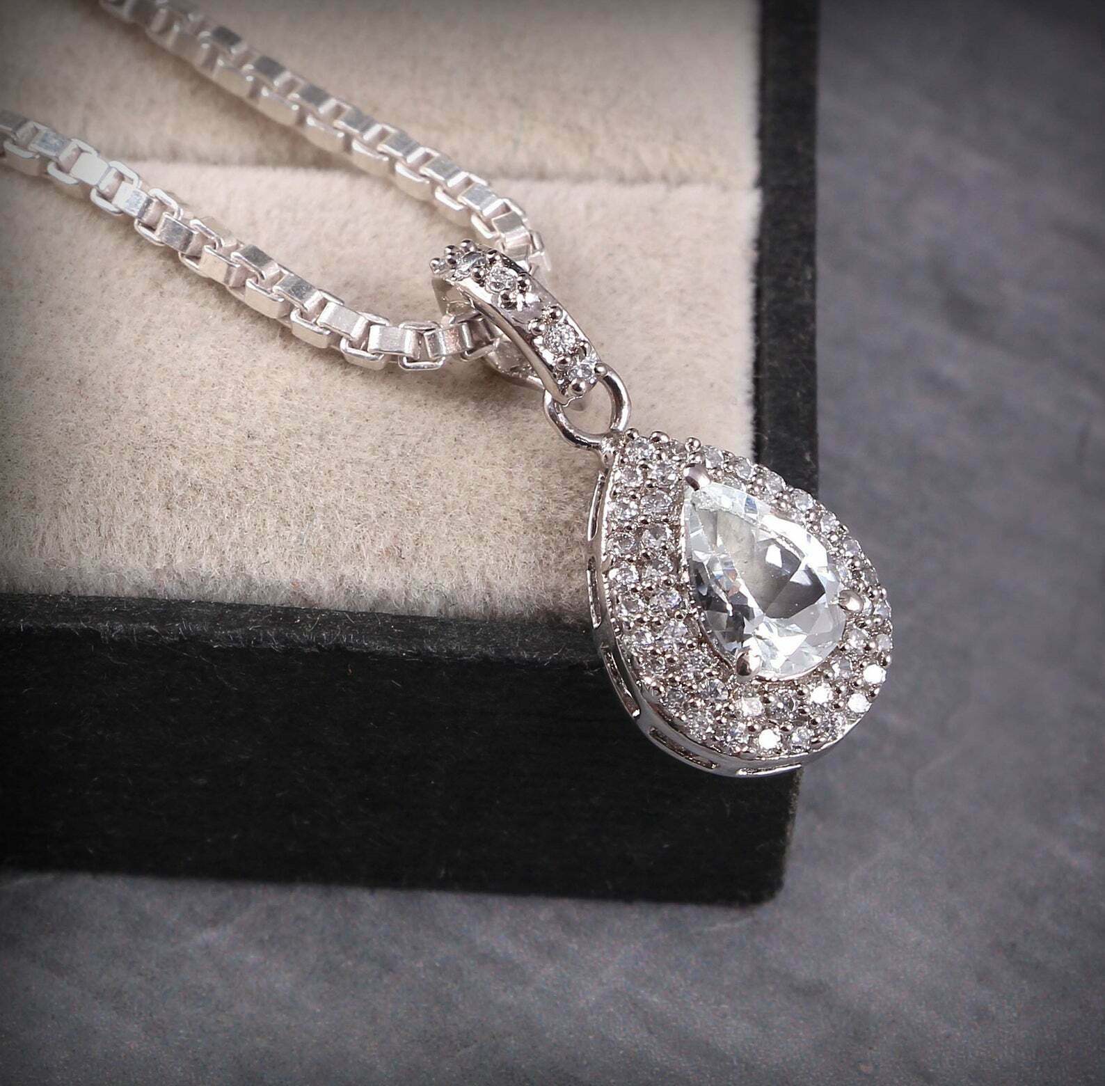 2.6ct Blue Aquamarine Pendant Oval Cut Dual Halo 14k White Gold Finish NO CHAIN
