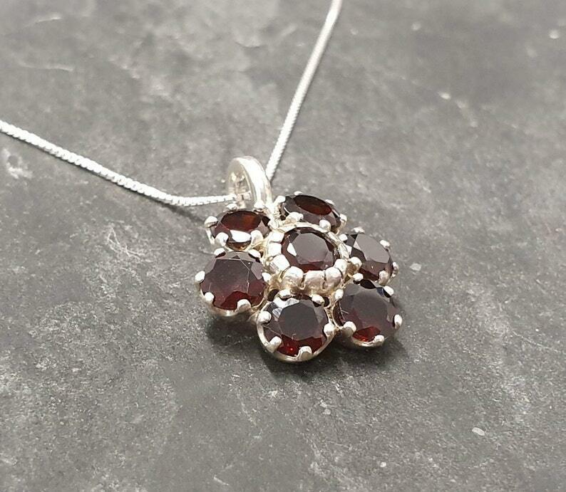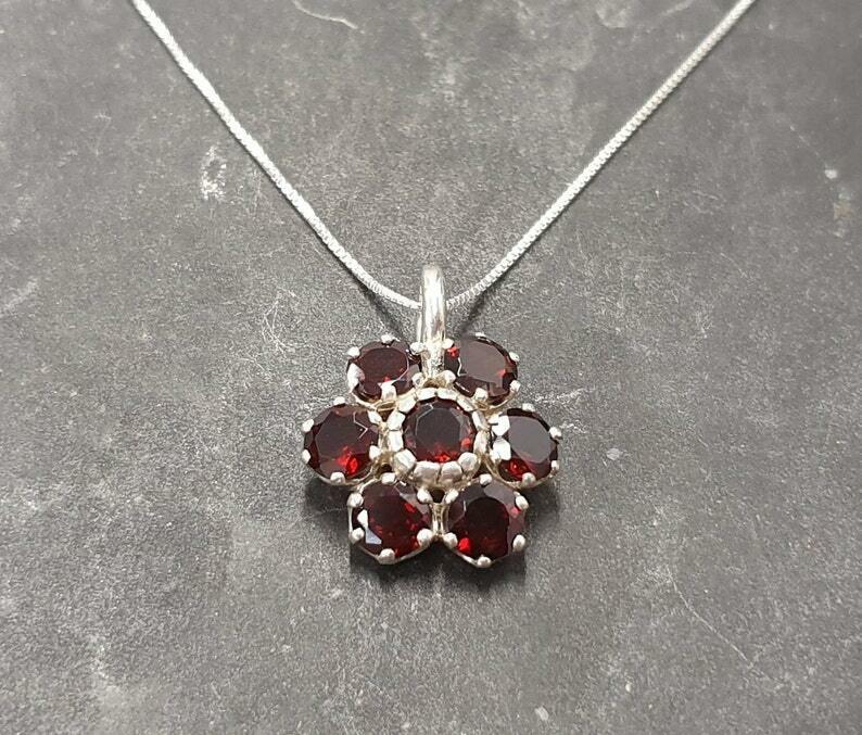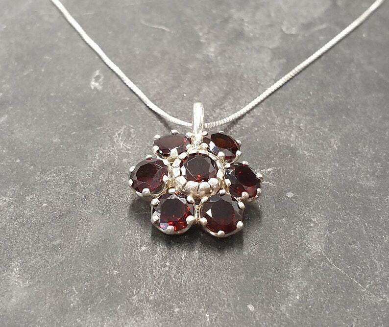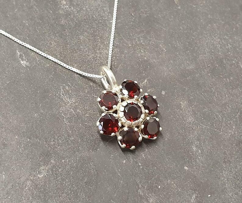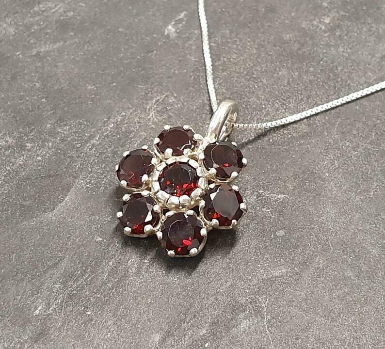 2.7ct Red Garnet Pendant Round Cut Cluster Design 14k White Gold Finish NO CHAIN