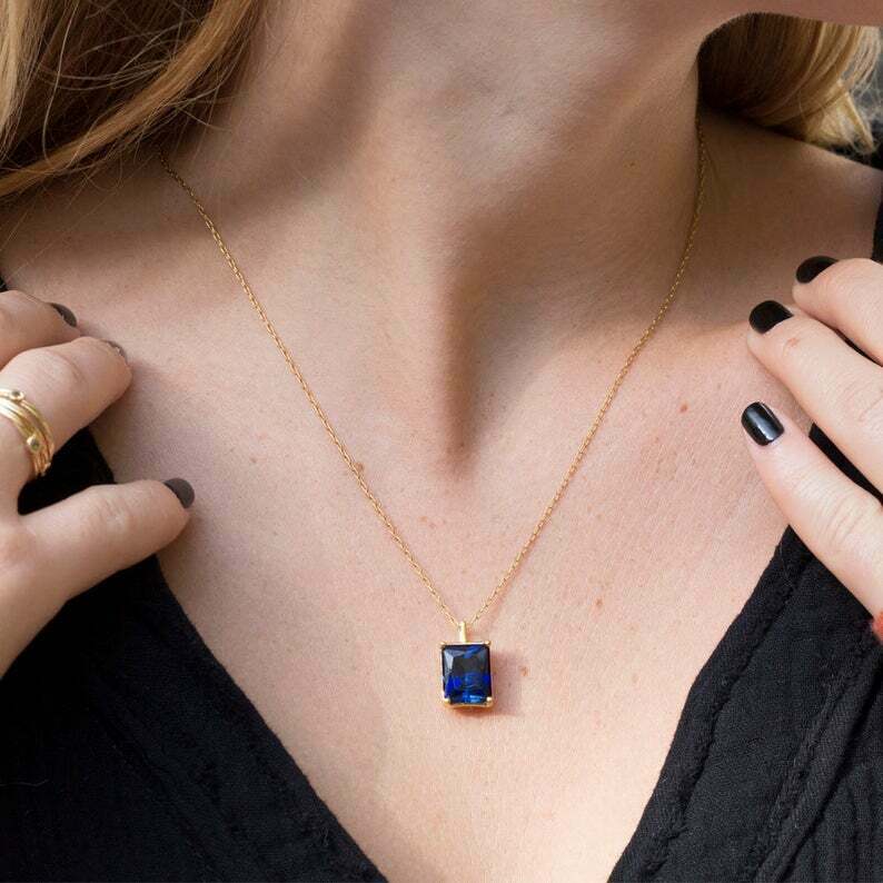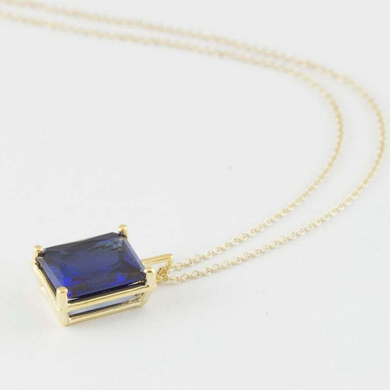 2.8ct Radiant Cut Blue Sapphire Classic Solitaire Pendant Chain 14k Yellow Gold Finish