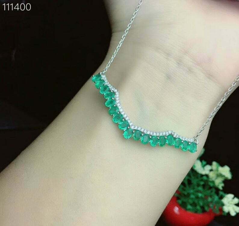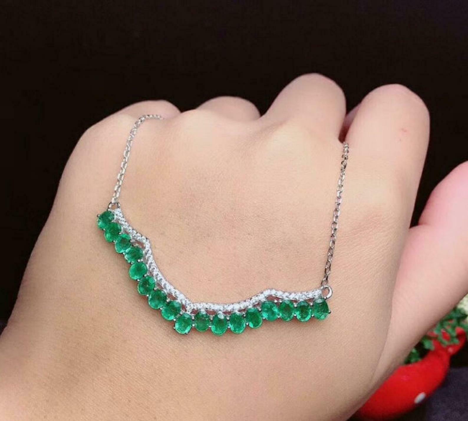 2.9ct Green Emerald Pendant with Chain Oval Cut Floral Leaf 14k WhiteGold Finish
