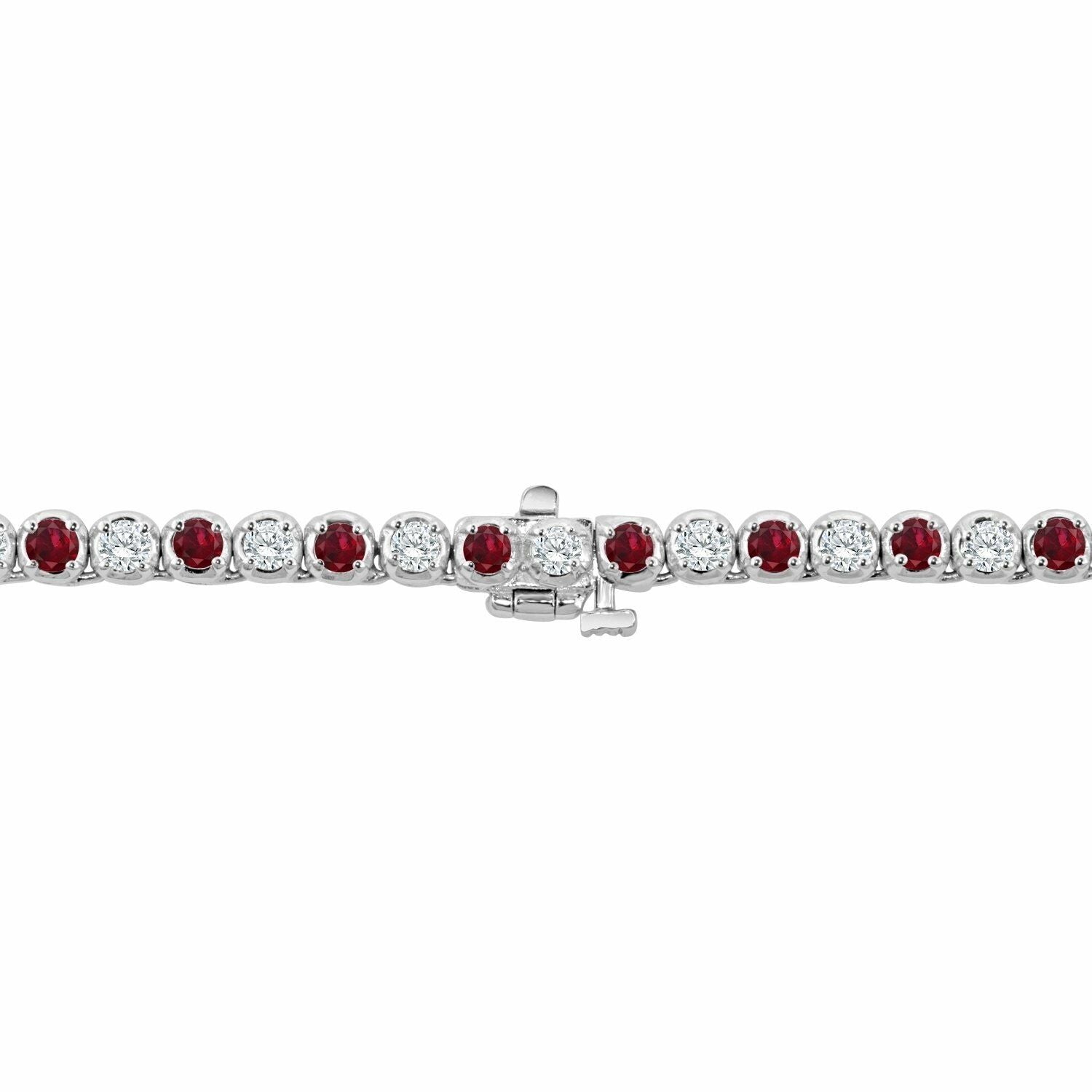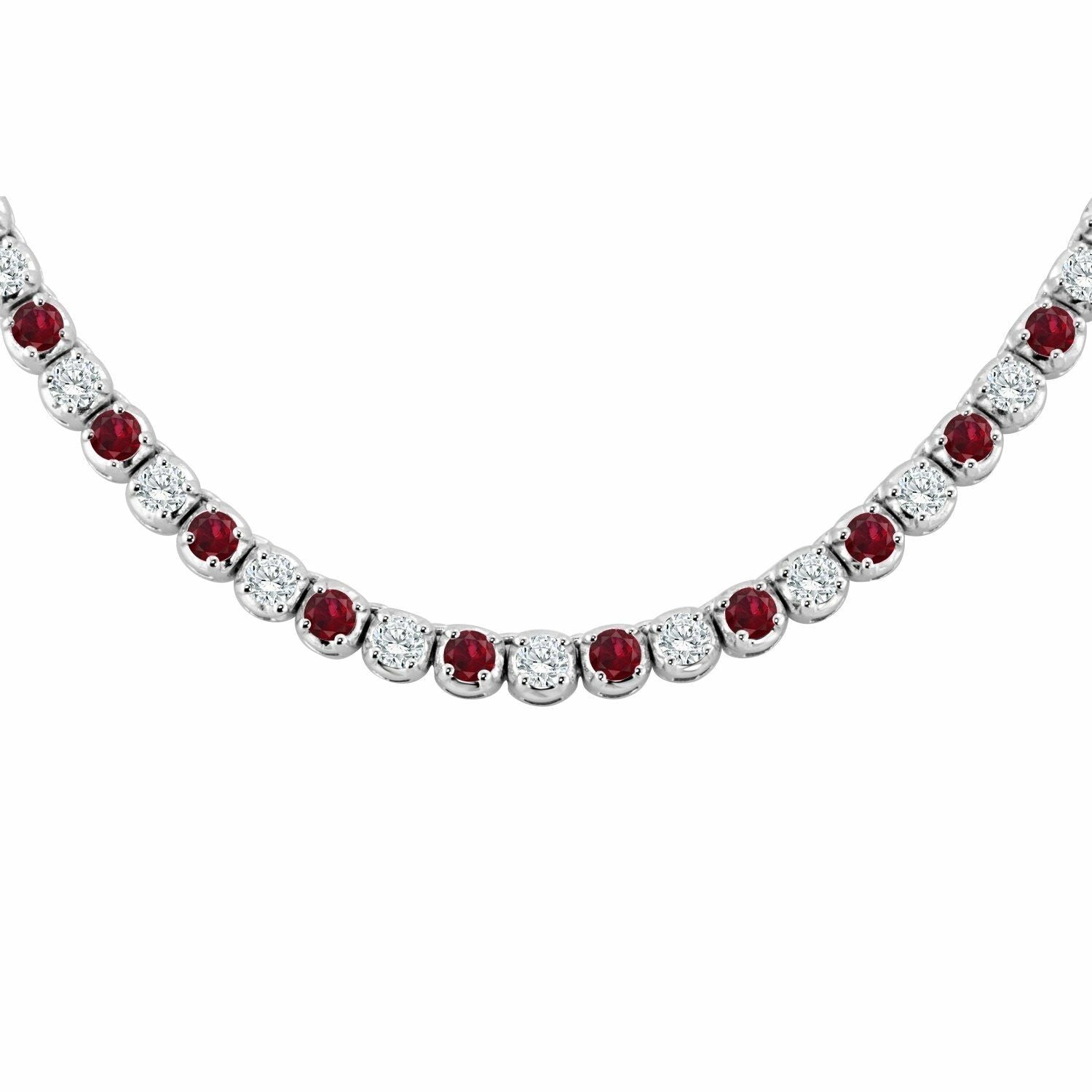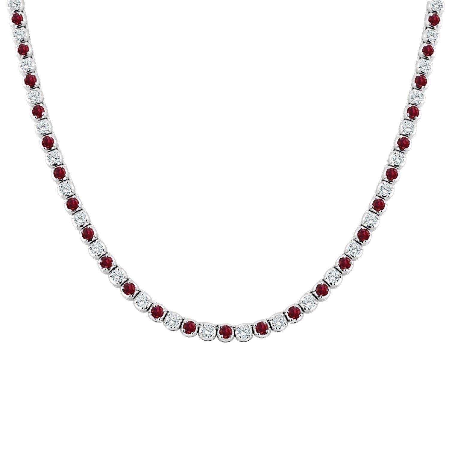25Ct Round Bezel Set Pink Ruby Diamond Tennis Necklace 14K White Gold Finish