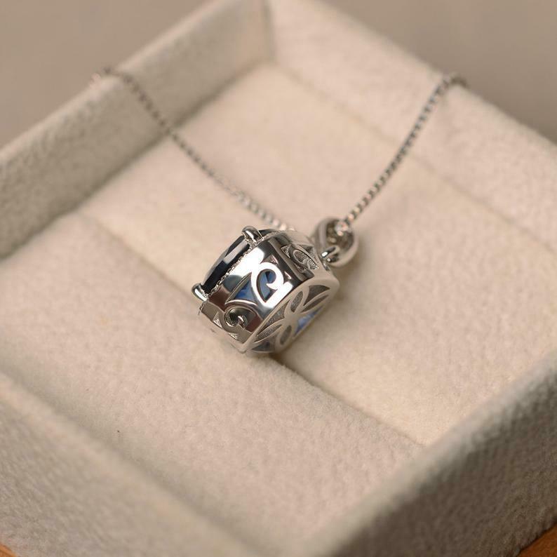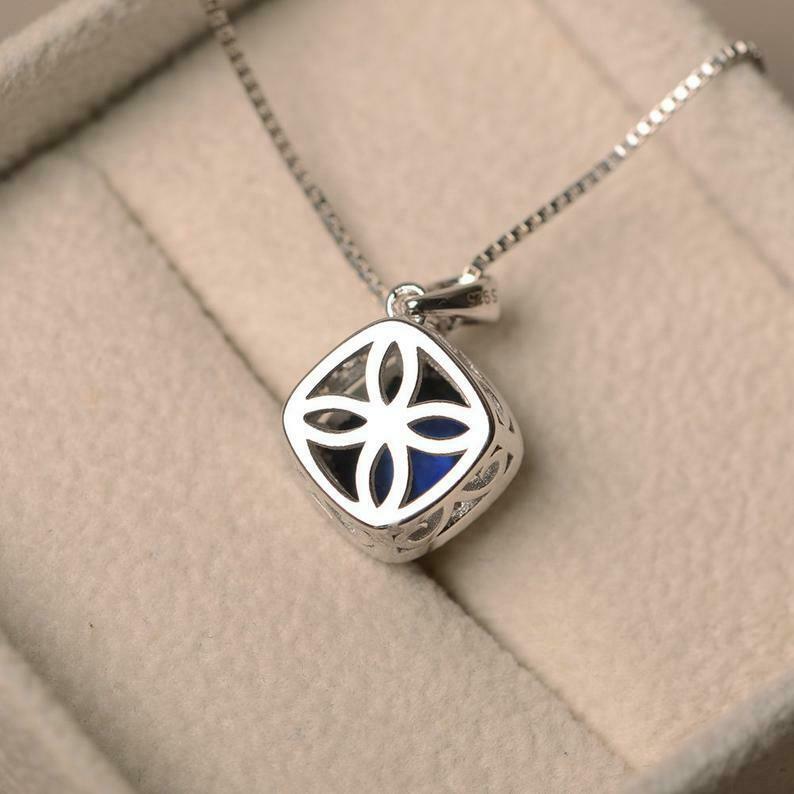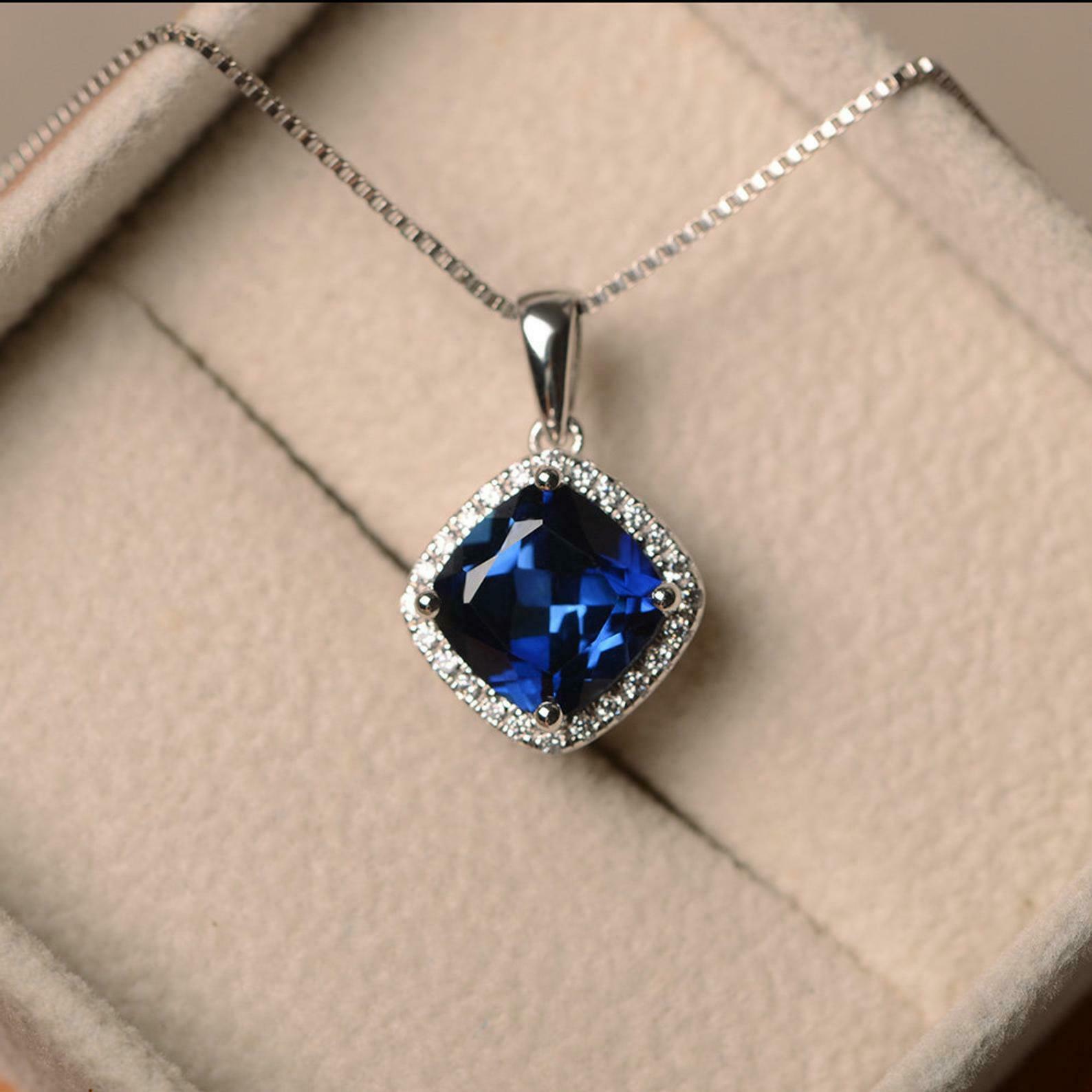 2ct Blue Sapphire Pendant Cushion Cut Diamond Halo 14k WhiteGold Finish NO CHAIN