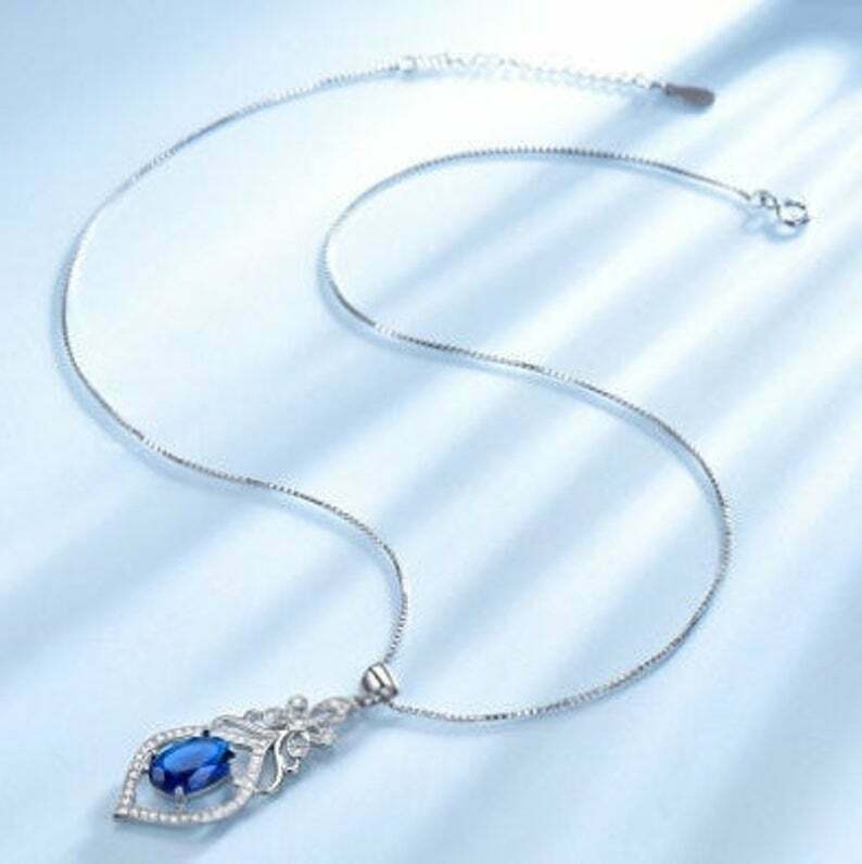 2ct Blue Sapphire Pendant Oval Cut Stylish Filigree 14k White Gold Over NO CHAIN