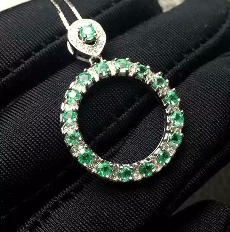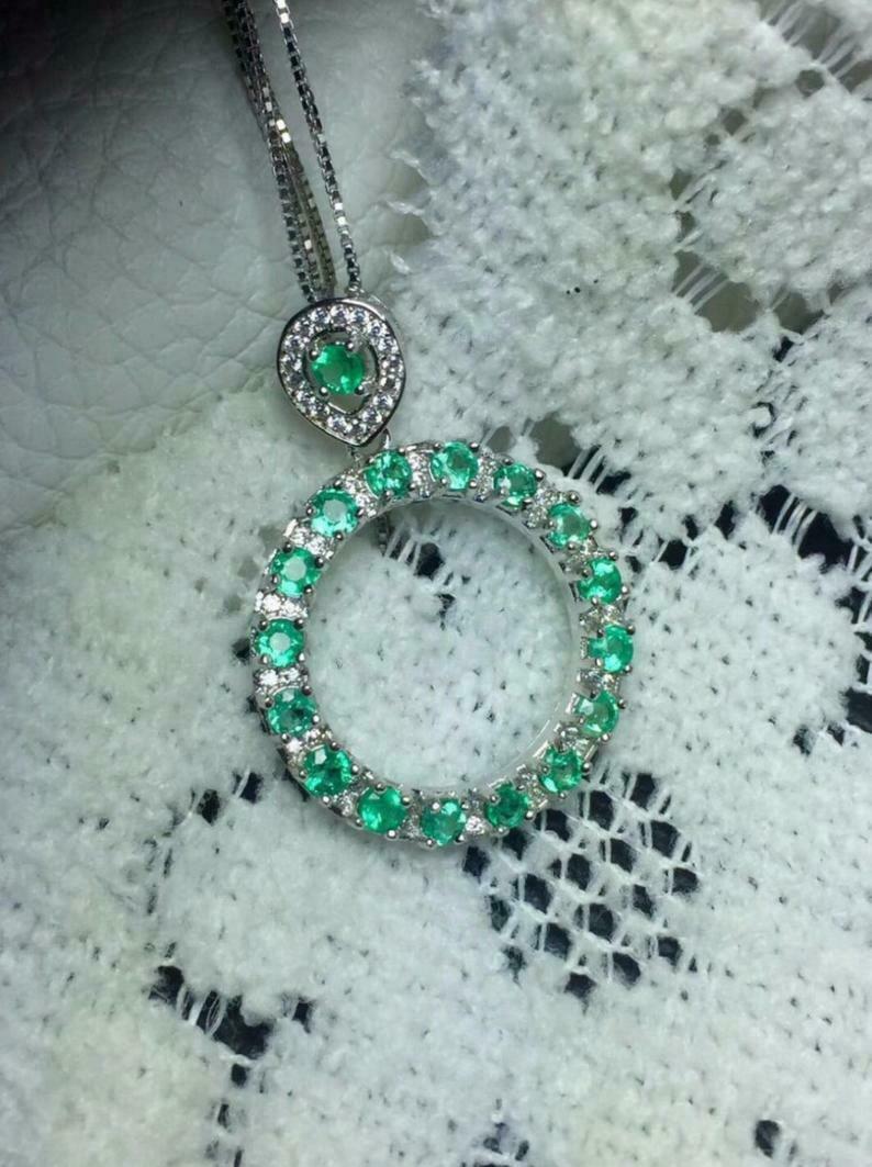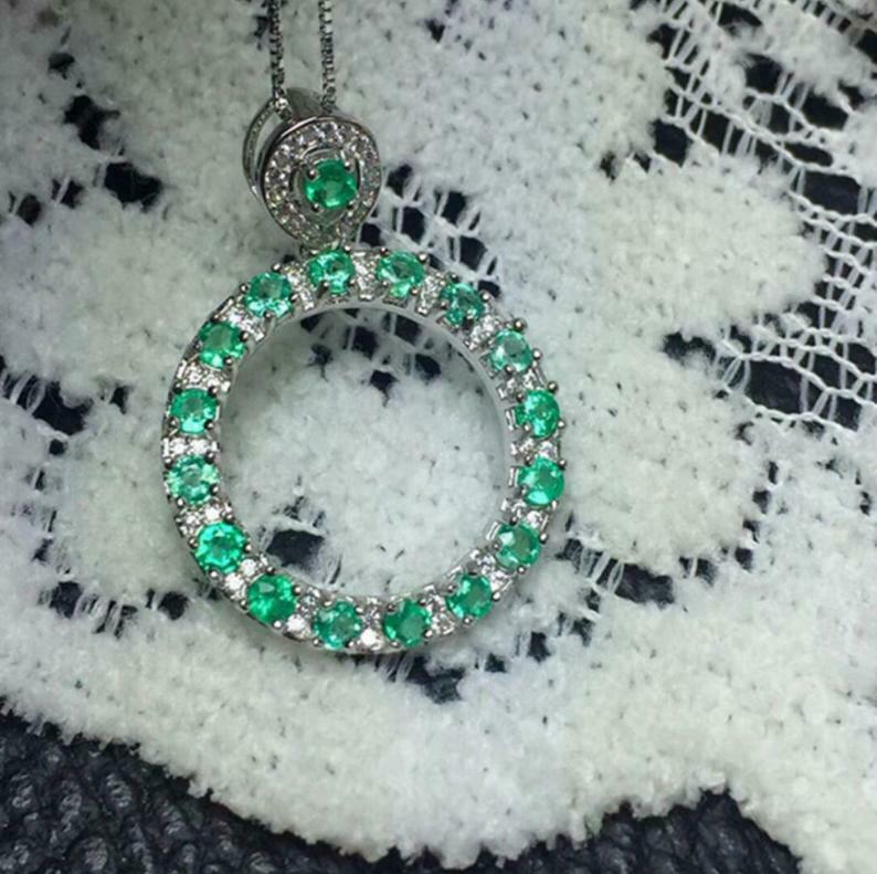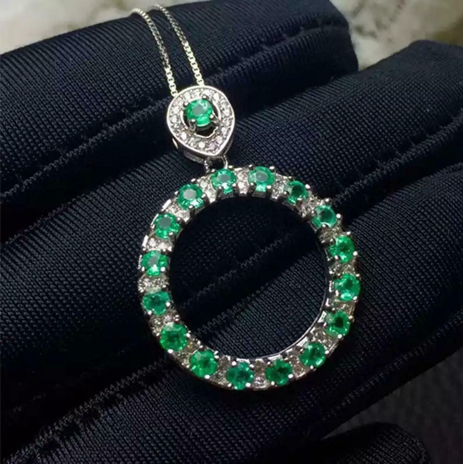 2ct Green Emerald Pendant Round Cut Open Circular 14k White Gold Finish NO CHAIN
