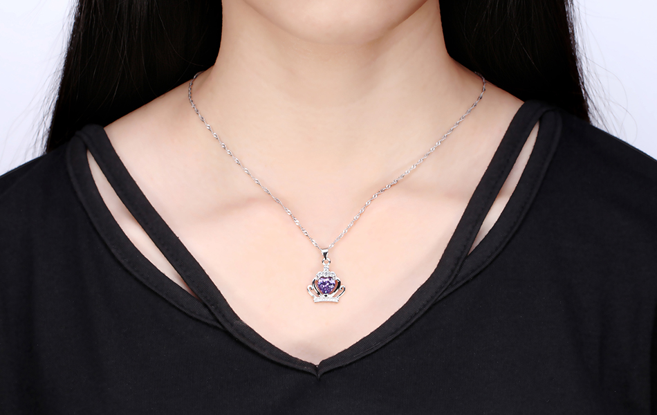 2ct Heart Cut Purple Amethyst Pendant Crystal Crown 14k White Gold Over NO CHAIN