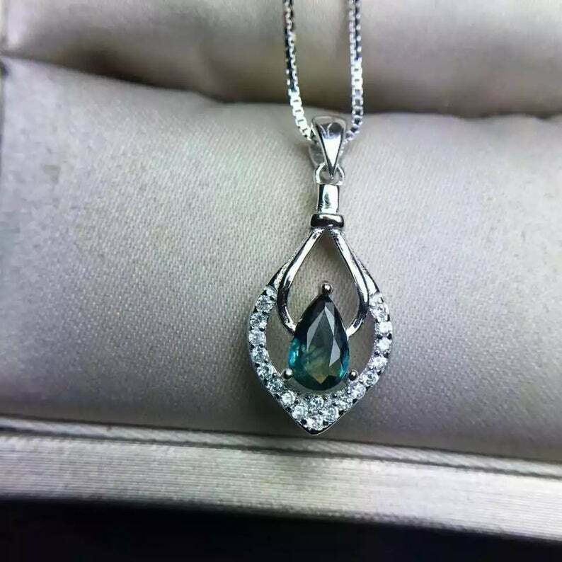 2ct London Blue Topaz Pendant Pear Cut Halo Drop 14k White Gold Finish NO CHAIN