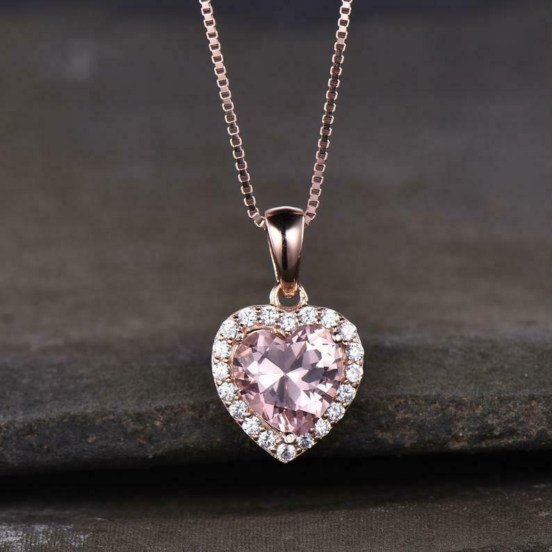 2ct Peach Morganite Pendant Heart Cut Diamond Halo 14k Rose Gold Finish NO CHAIN