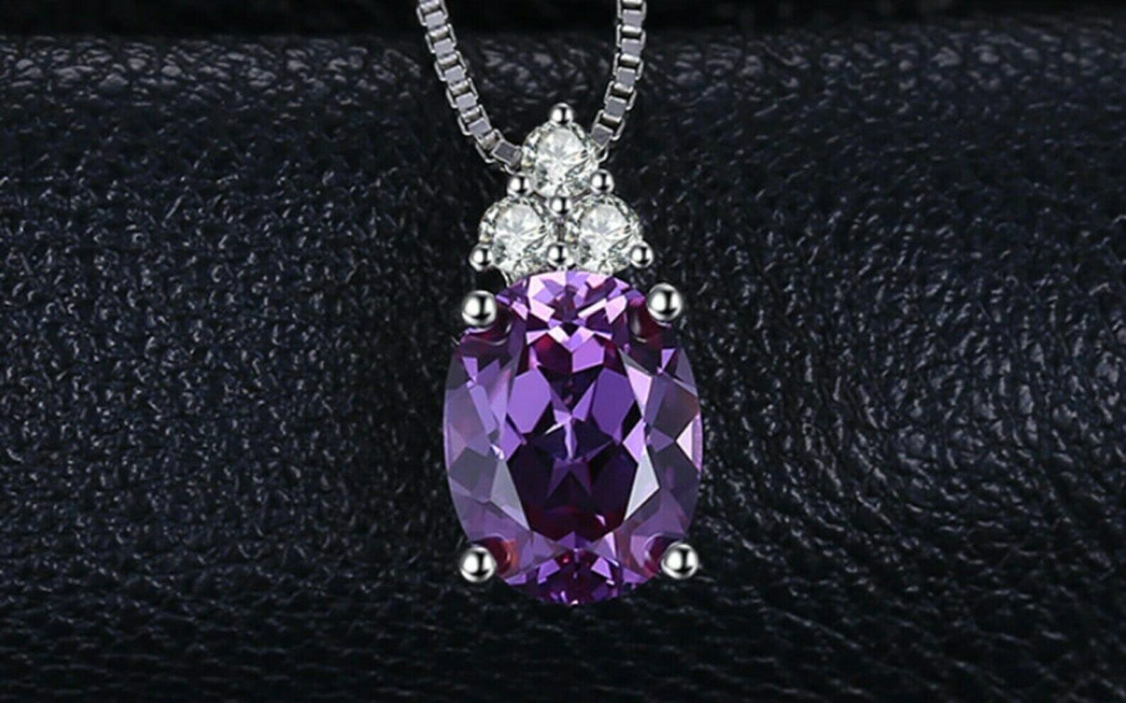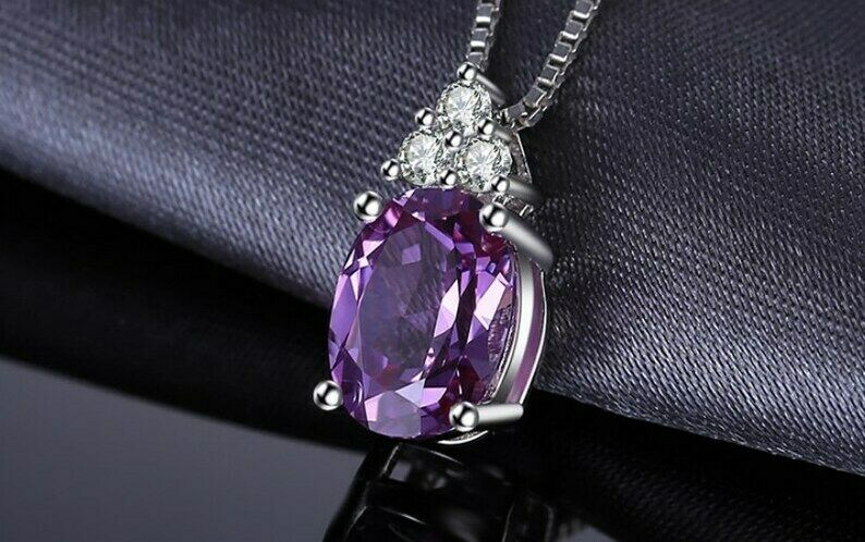 2ct Purple Amethyst Pendant Oval Cut Diamond Petite 14k White Gold Over NO CHAIN
