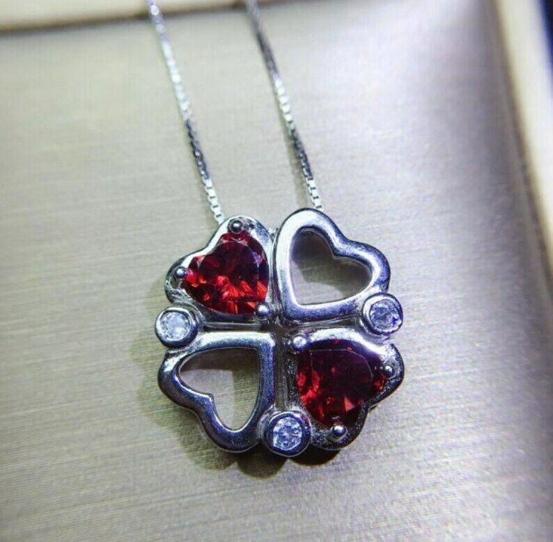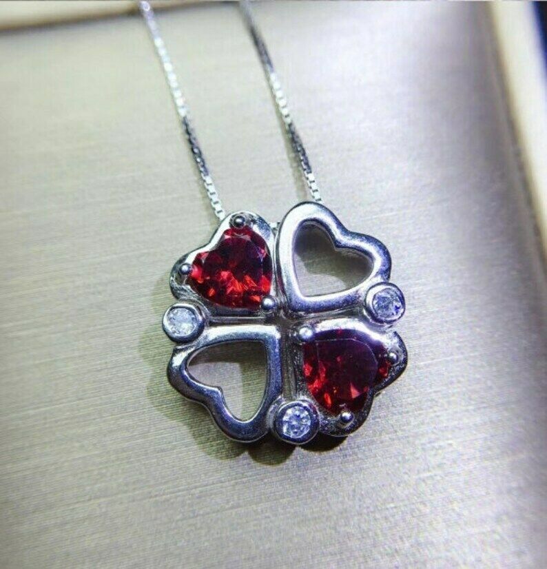 2ct Red Garnet Pendant Heart Cut Valentine Heart 14k White Gold Finish NO CHAIN