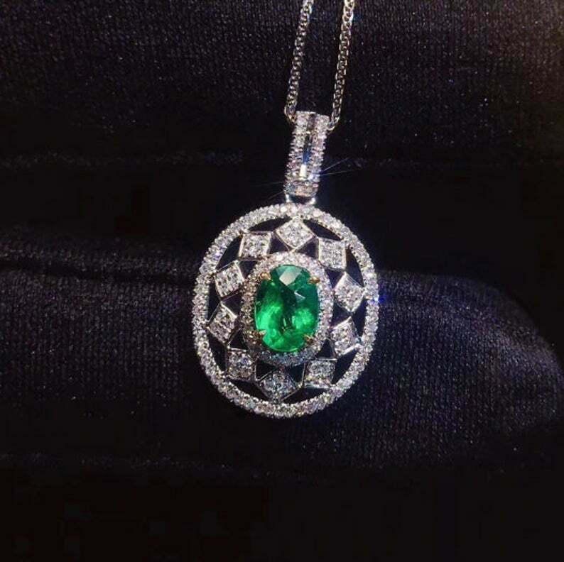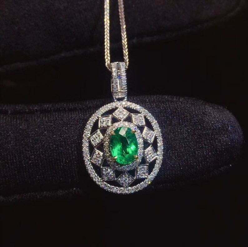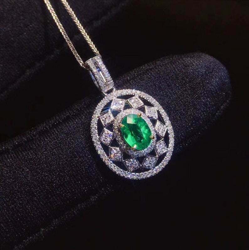 3.2ct Green Emerald Pendant Oval Cut Cocktail Party Wear 14k White Gold Over NO CHAIN
