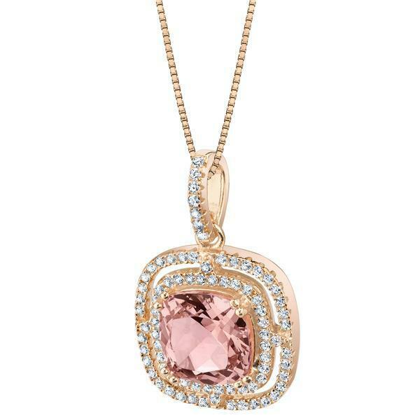 3Ct Cushion Cut Peach Morganite Dual Halo Diamond Pendant 14K Rose Gold Finish