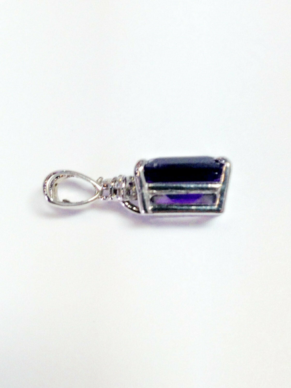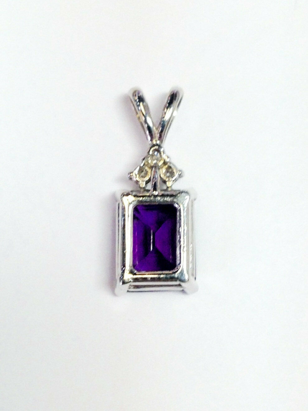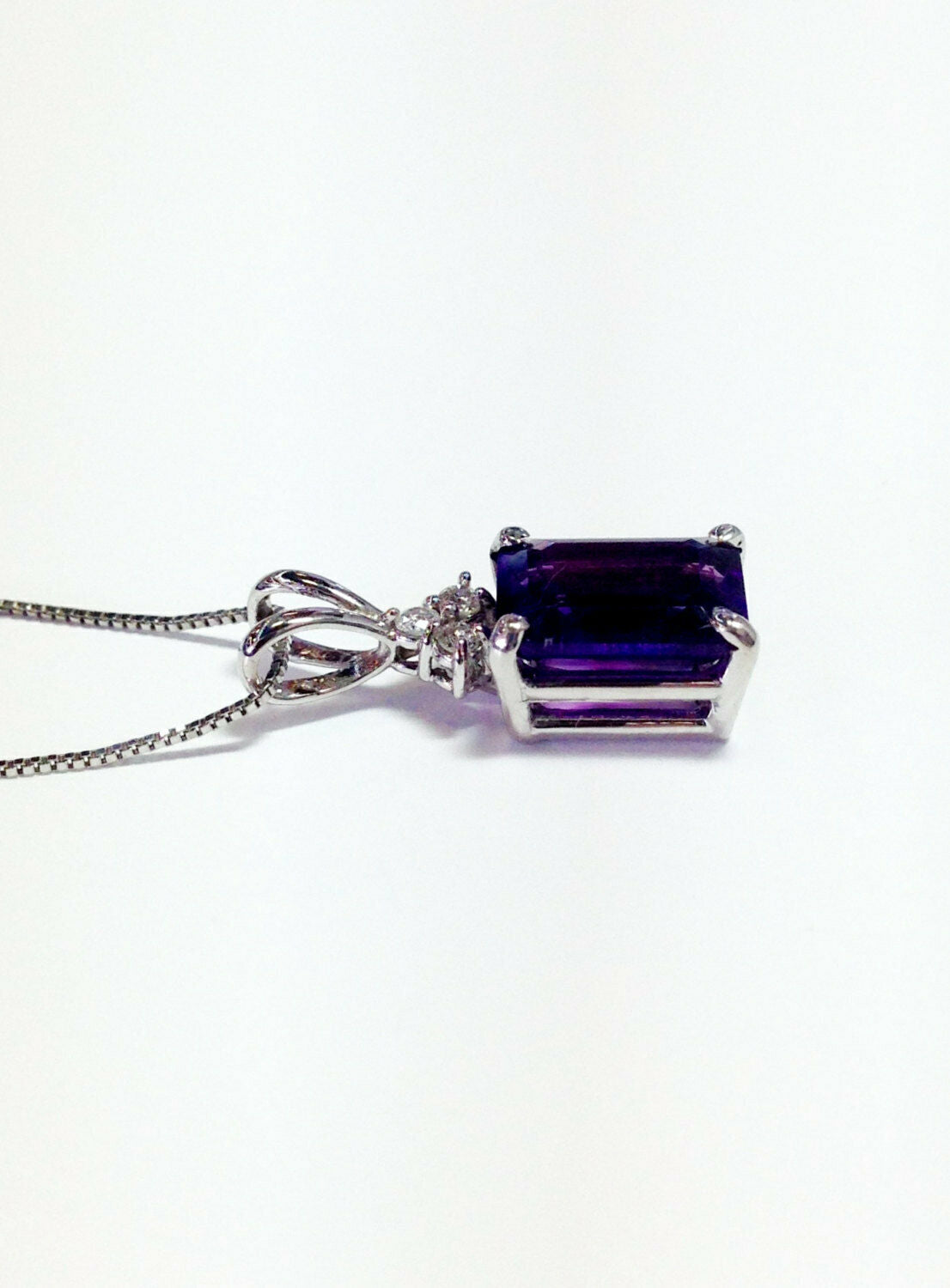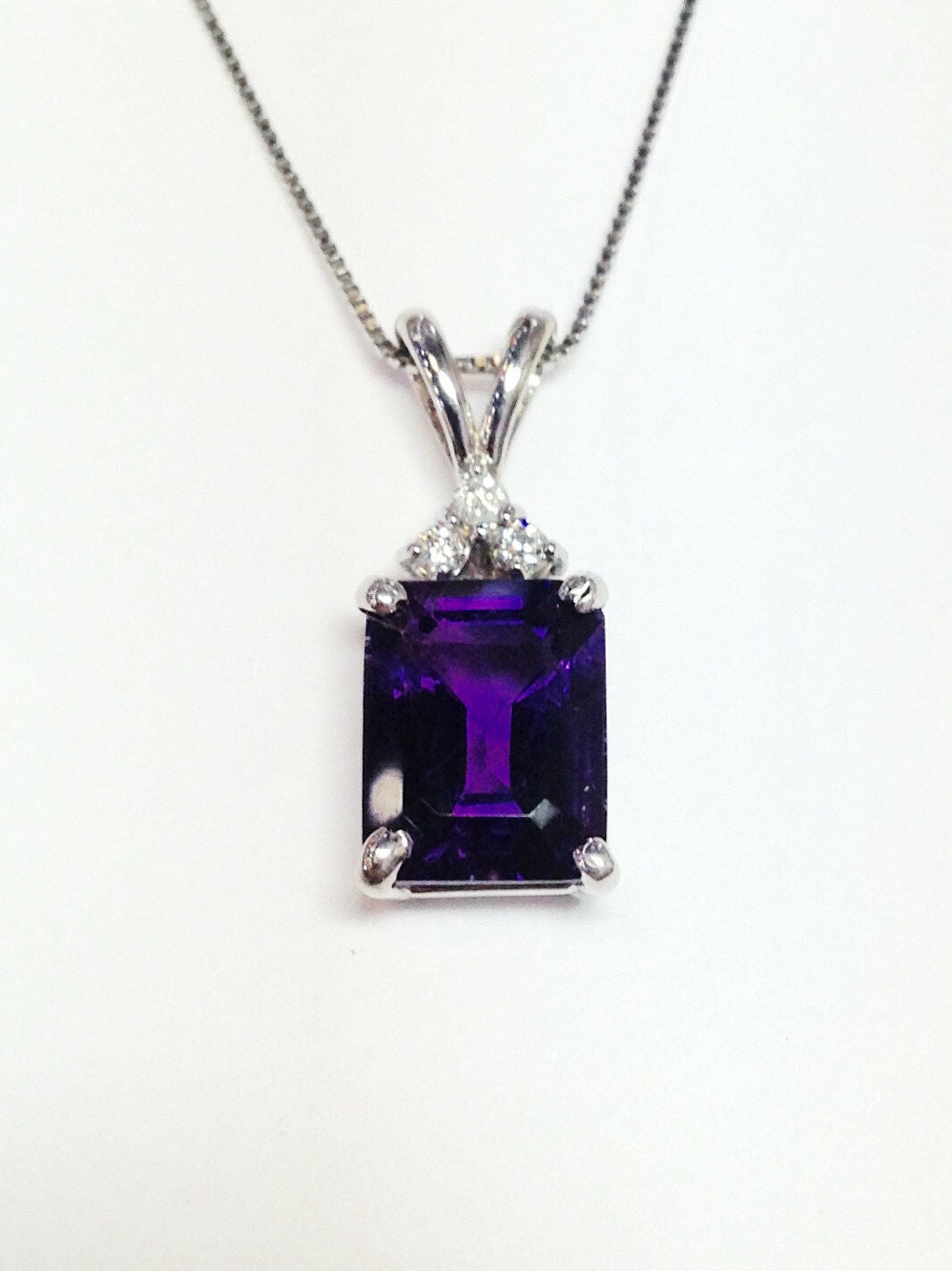 3Ct Emerald Cut Purple Amethyst Diamond Solitaire Pendant 14K White Gold Finish