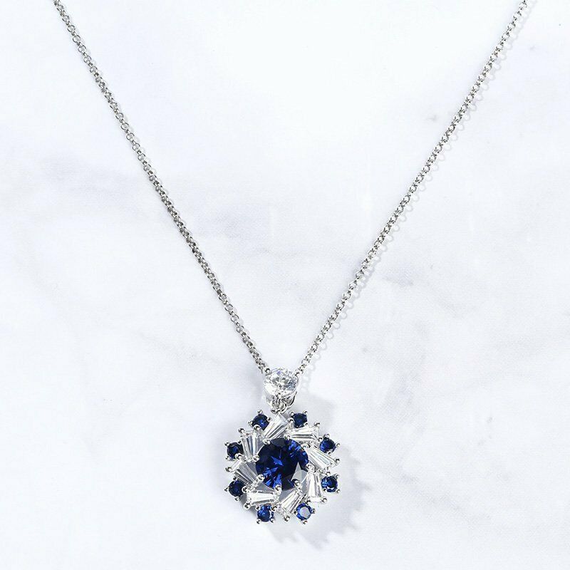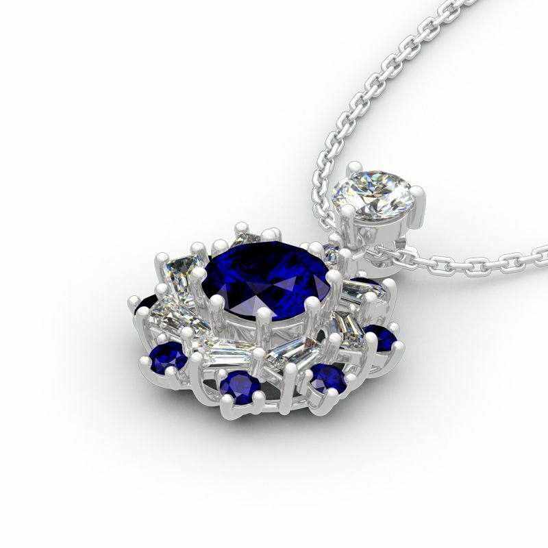 3Ct Round Blue Sapphire Baguette Diamond Pendant 14K White Gold Finish NO CHAIN