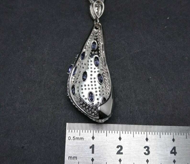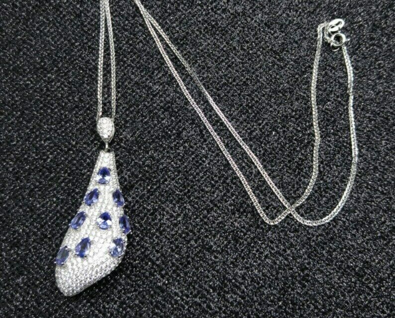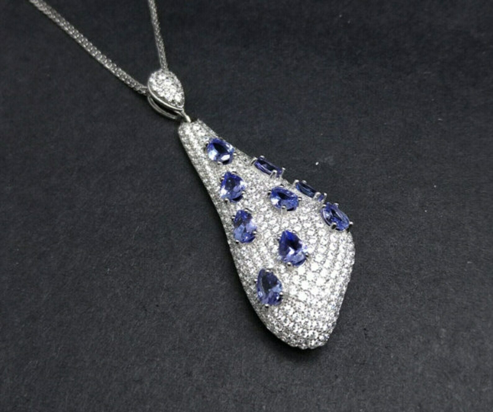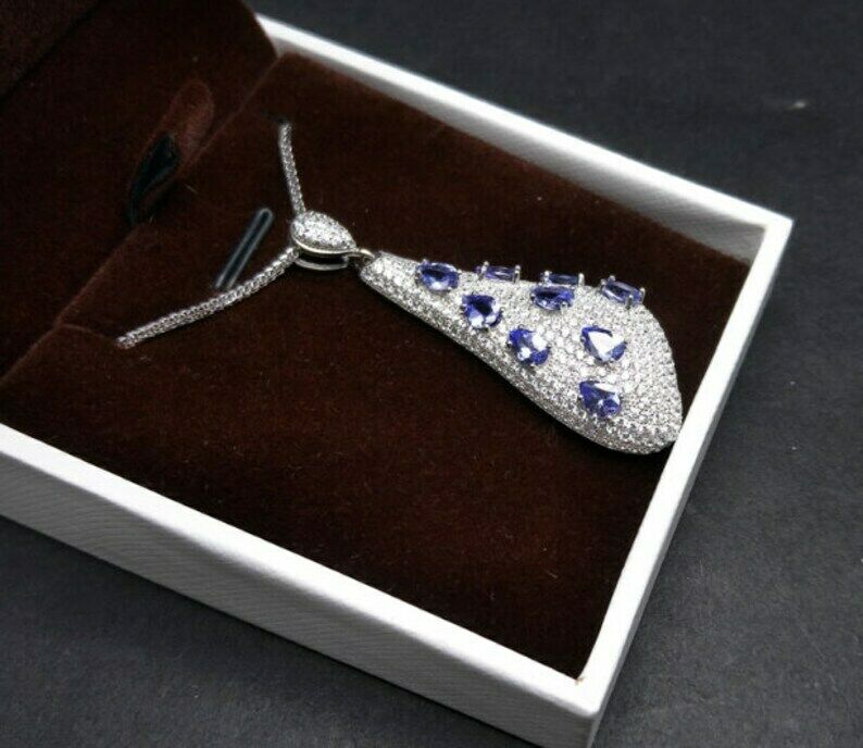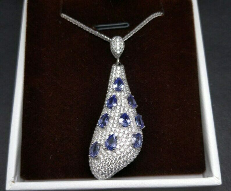 4ct Blue Tanzanite Pendant Pear Cut Cocktail Ice 14k White Gold Finish NO CHAIN