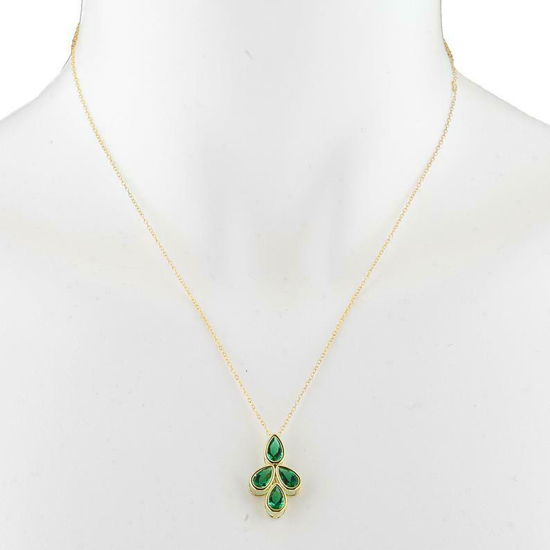 4ct Green Emerald Pendant with Chain Pear Cut Four Pear 14k Yellow Gold Finish