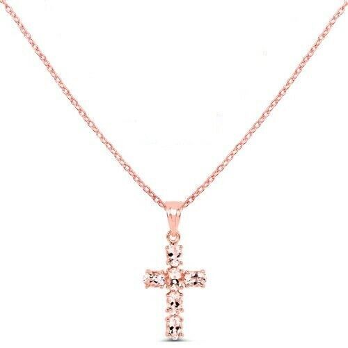 4Ct Oval Cut Peach Morganite Jesus Cross Pendant 14K Rose Gold Finish NO CHAIN