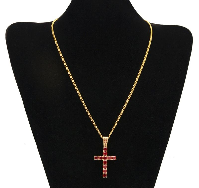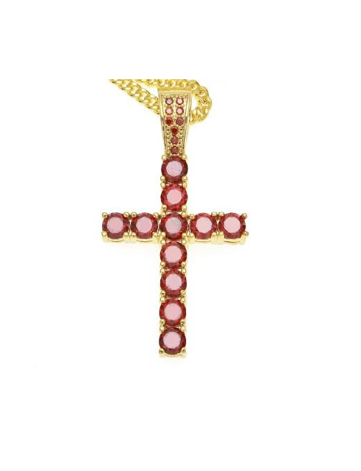 4ct Round Cut Pink Ruby Christ Cross Pendant 14k Yellow Gold Finish NO CHAIN