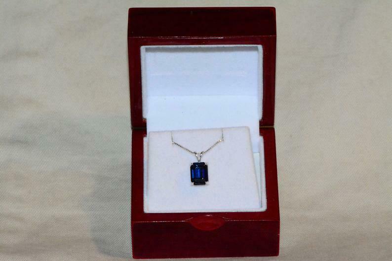 5ct Blue Sapphire Pendant Emerald Cut Solitaire Women 14k White Gold Finish NO CHAIN