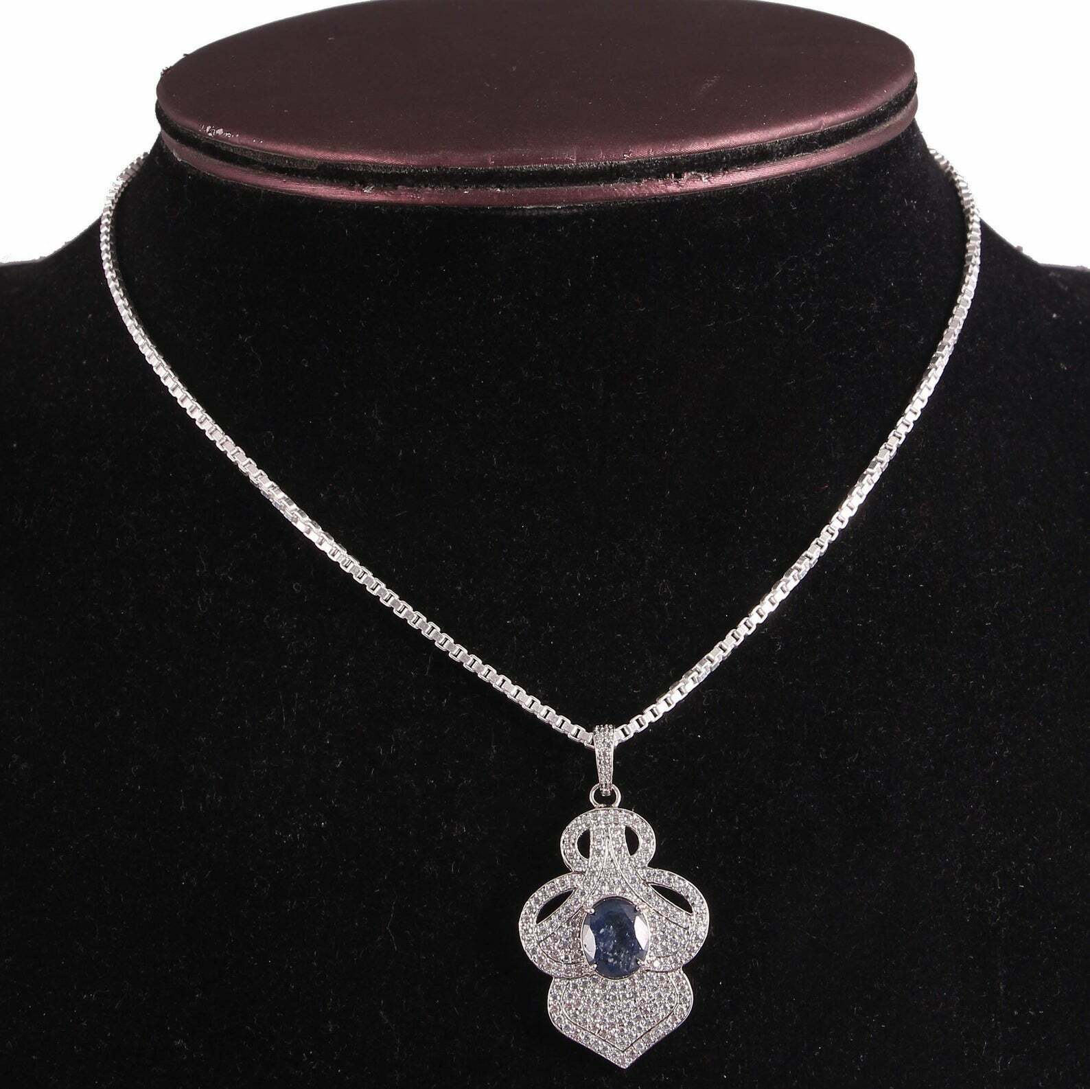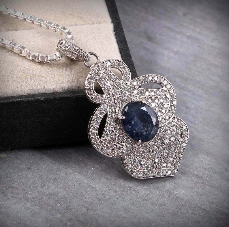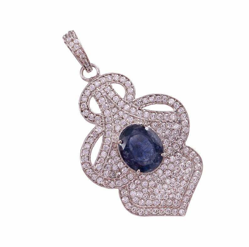 5ct Blue Sapphire Pendant Oval Cut Floral Cocktail 14k WhiteGold Finish NO CHAIN
