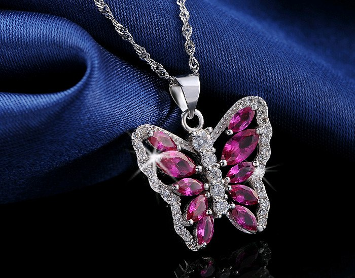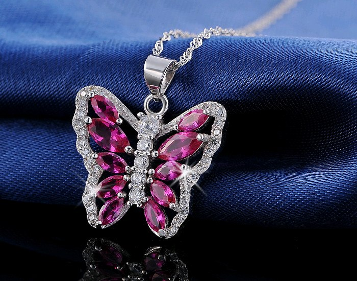 5ct Marquise Cut Pink Ruby Pendant Butterfly Design 14k White Gold Over NO CHAIN