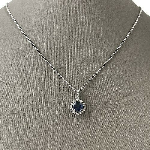 2Ct Round Cut Blue Sapphire Diamond Halo Pendant 14K White Gold Over WITH CHAIN