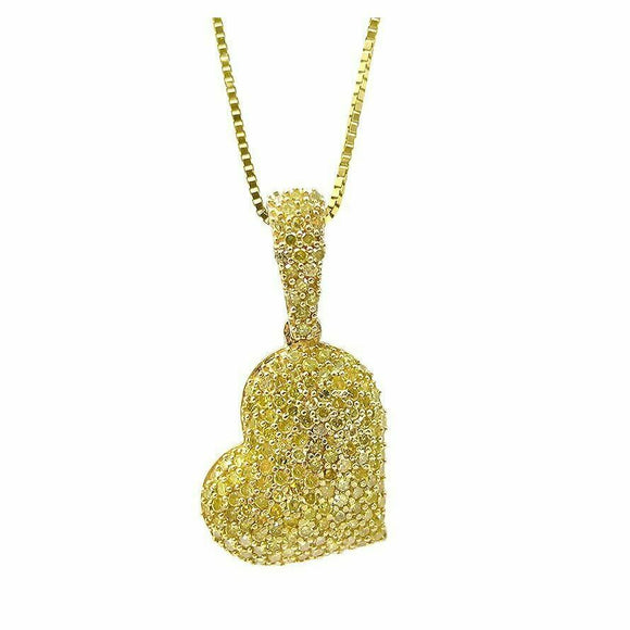 4ct Round Cut Yellow Sapphire Iced Hanging Heart Pendant 14k Yellow Gold Finish