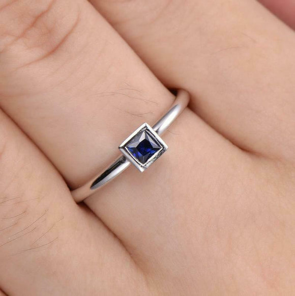 0.5ct Princess Cut Blue Sapphire Engagement Ring Solitaire 18k White Gold Finish
