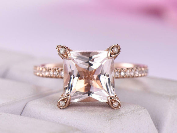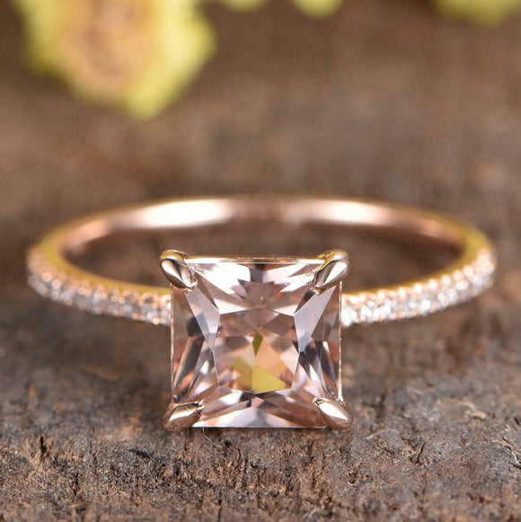 2ct Princess Cut Morganite Engagement Ring Vintage Bridal Set 14k Rose Gold Over