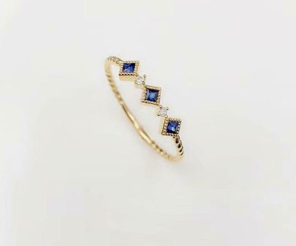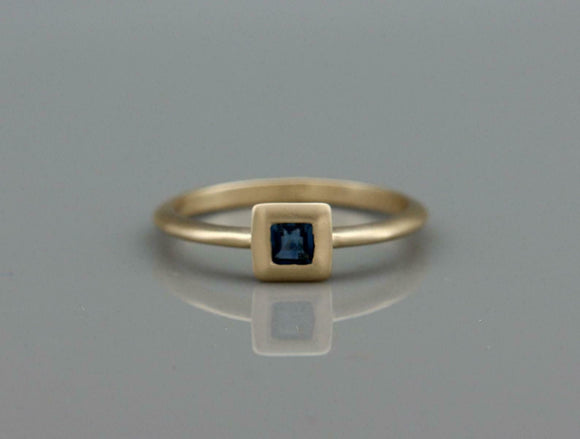 0.2ct Princess Cut Blue Sapphire Engagement Ring Solitaire 14k YellowGold Finish