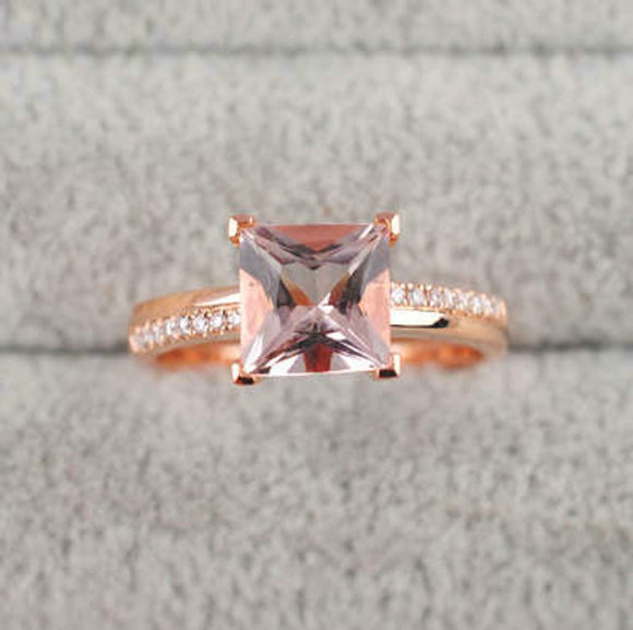 1.5ct Princess Cut Morganite Diamond Accents Solitaire Ring 14k Rose Gold Finish