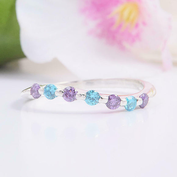 1ct Round Alternate Purple Amethyst Blue Topaz Wedding Band 14k White Gold Over