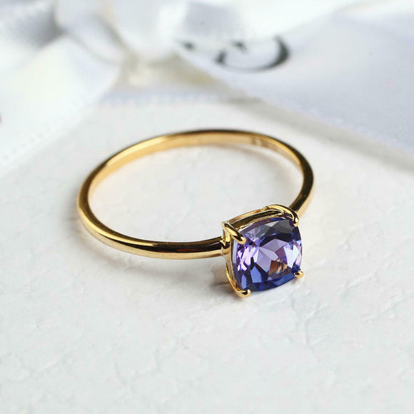 1ct Cushion Cut Purple Amethyst Engagement Ring Solitaire 14k Yellow Gold Finish