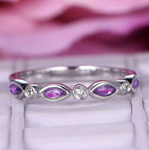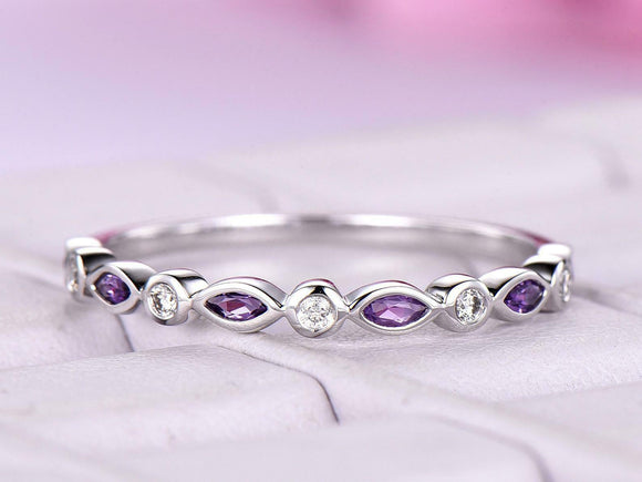1ct Marquise Cut Purple Amethyst Wedding Band Half Eternity 14k WhiteGold Finish