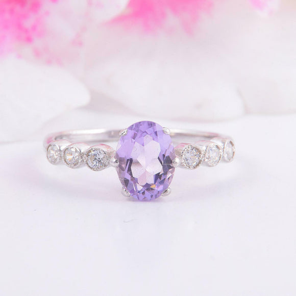 0.6ct Round Cut Purple Amethyst Engagement Ring Minimalist 14k White Gold Finish