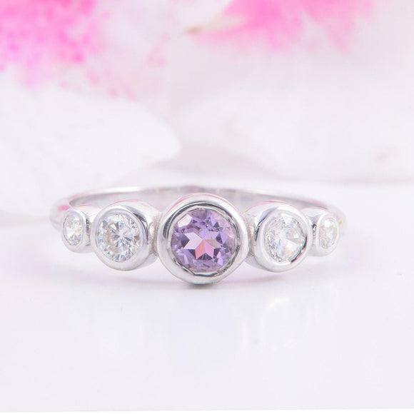 1.5ct Round Cut Purple Amethyst Five Stone Bezel Set Ring 14k White Gold Finish