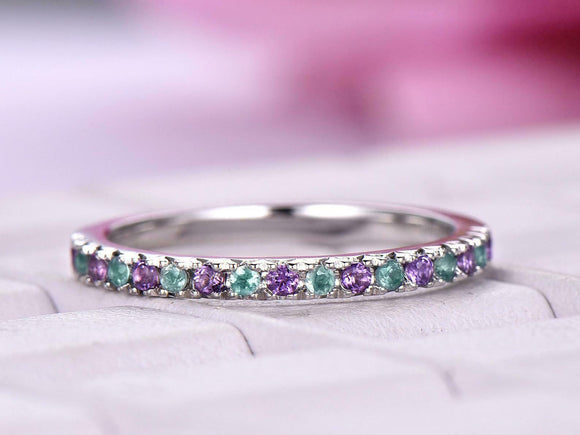1.2ct Round Cut Purple Amethyst Emerald Half Eternity Band 14k White Gold Finish