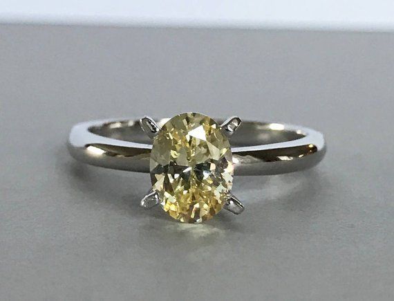 1ct Oval Yellow Sapphire Solitaire Promise Engagement Ring 14k White Gold Finish