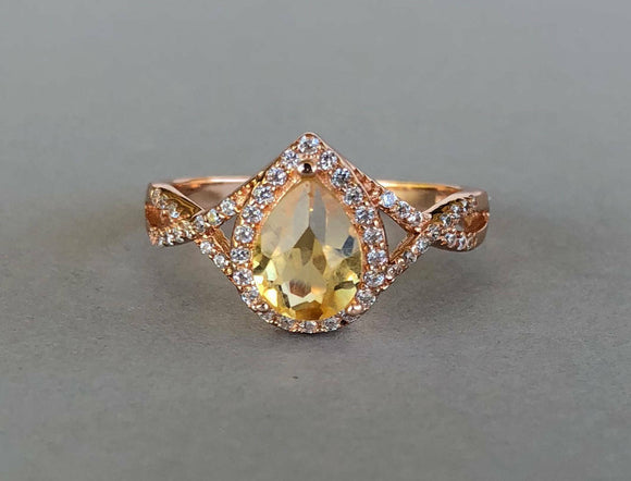 2ct Pear Cut Yellow Sapphire Halo Infinity Engagement Ring 14k Rose Gold Finish