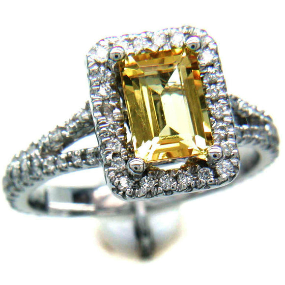 5Ct Radiant Cut Yellow Sapphire Iced Halo Engagement Ring 14K White Gold Finish