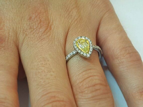 2ct Pear Cut Yellow Sapphire Accents Halo Engagement Ring 14k Yellow Gold Finish