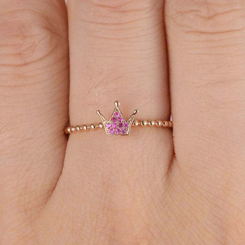 0.2ct Round Cut Pink Ruby Princess Crown Tiara Engagement Ring 14k RoseGold Over